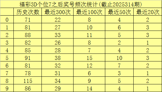 个位杀号:上期个位奖号为7,历史上个位奖号7共开出859次,最近100次个位奖号7出面前,其下期号码0-9开出次数分辨为:奖号5开出15次,9开出14次,6开出12次,2开出11次,1开出10次,8开出9次,0、3开出8次,4开出7次,7开出6次。