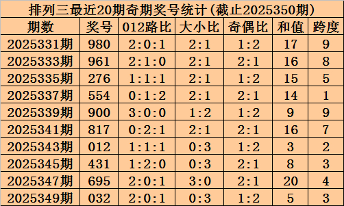 上期总结:成列三2025350期奖号为673,奇偶比为2:1,大小比为2:1吴江旅行社,跨度为16。